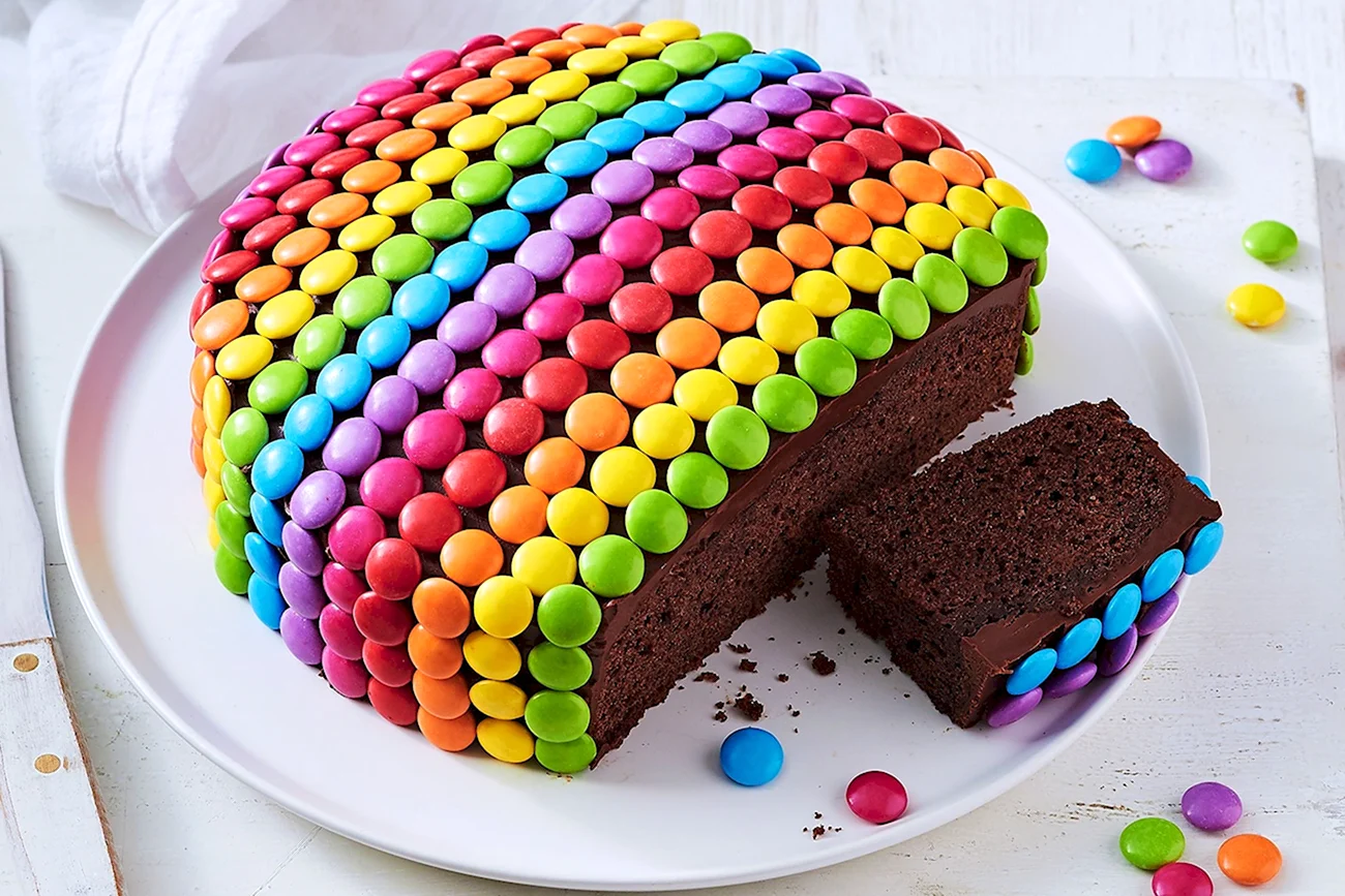 О, как же классно! Весь торт словно в весёлых конфетках, прям душа радуется!
