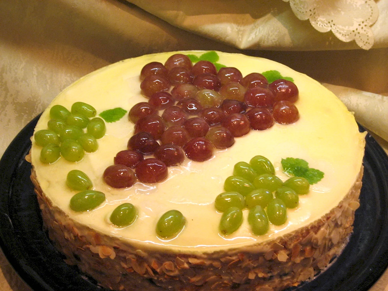 Прекрасное украшение торта в виде изысканного винограда добавит неповторимого шарма и вкуса вашему праздничному столу.