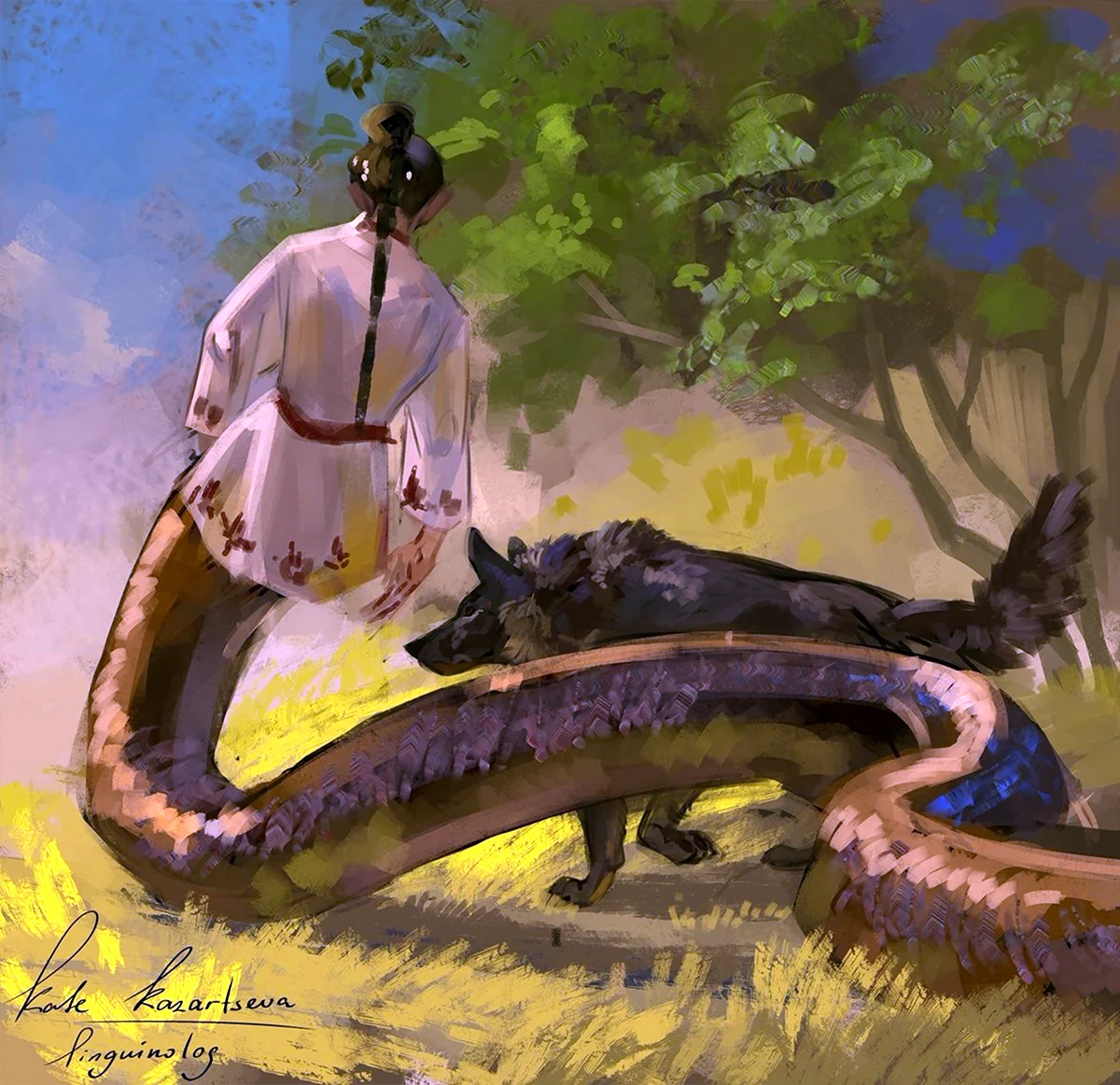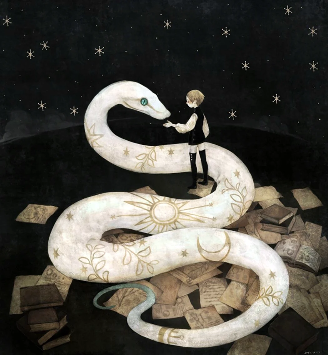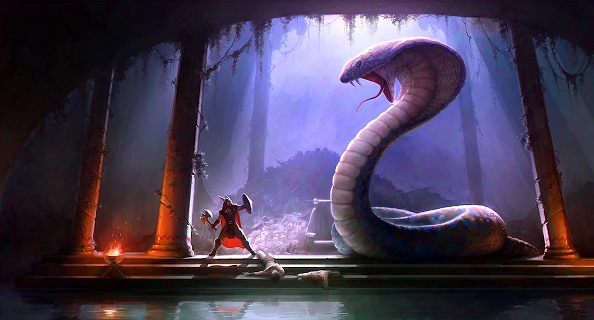 Ого, этот змей прям как супергерой из старых мифов! Вижу, он не только мудр, но и круто выглядит!