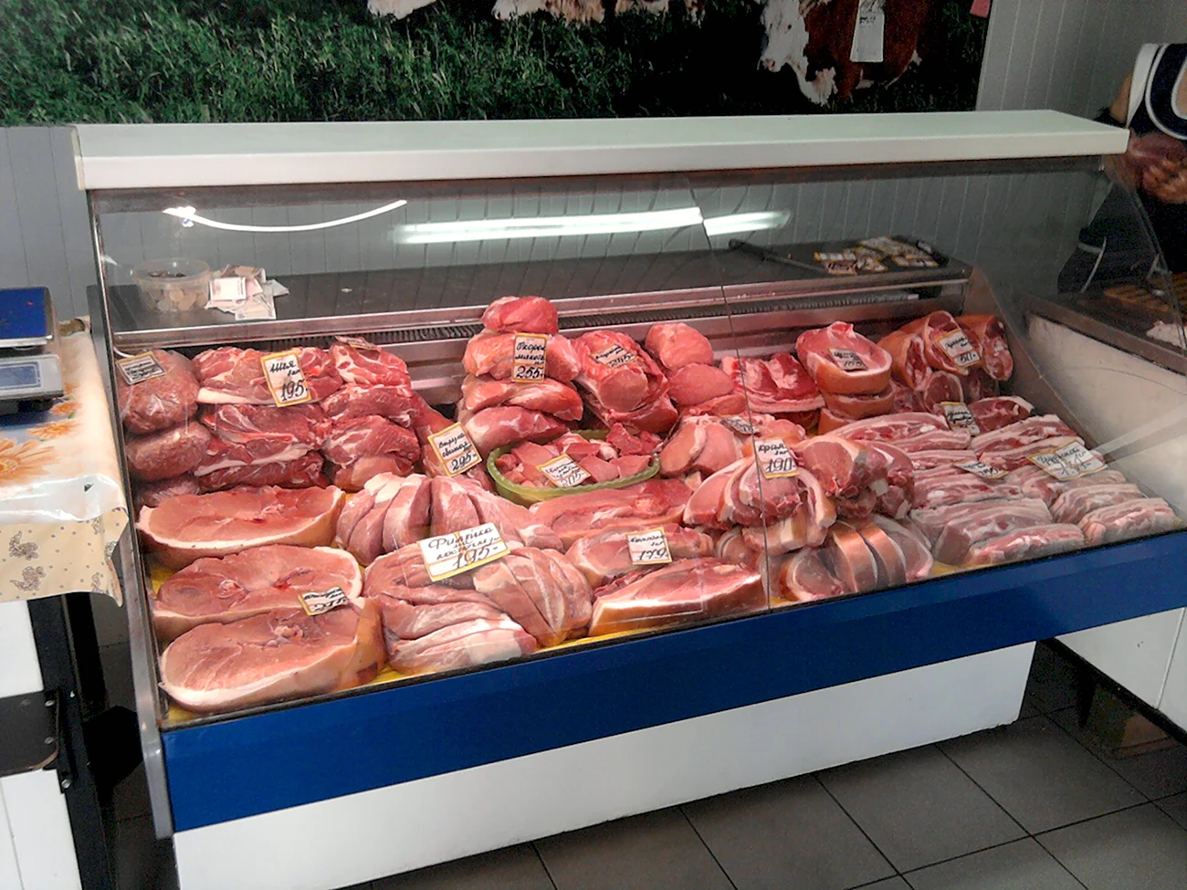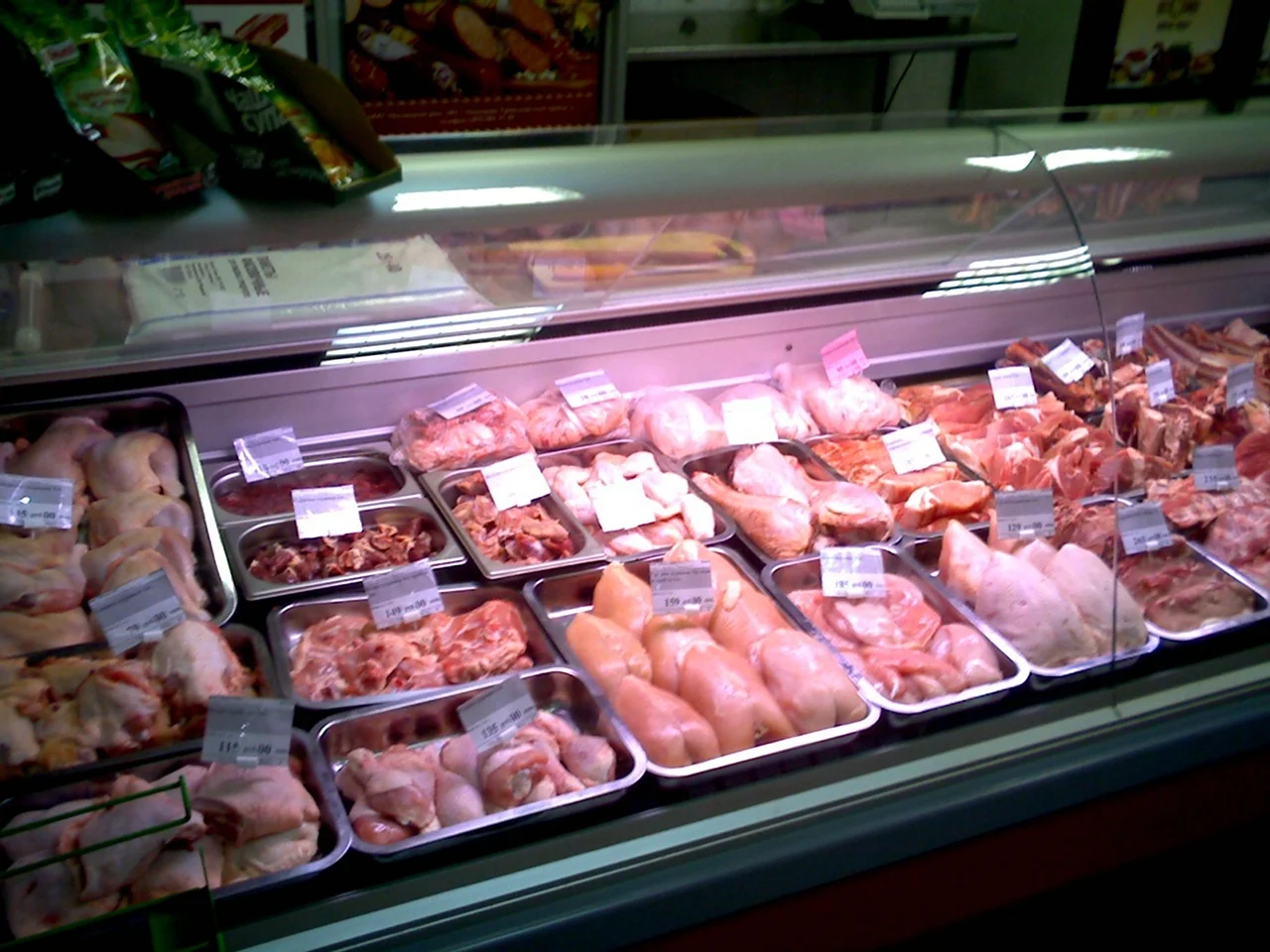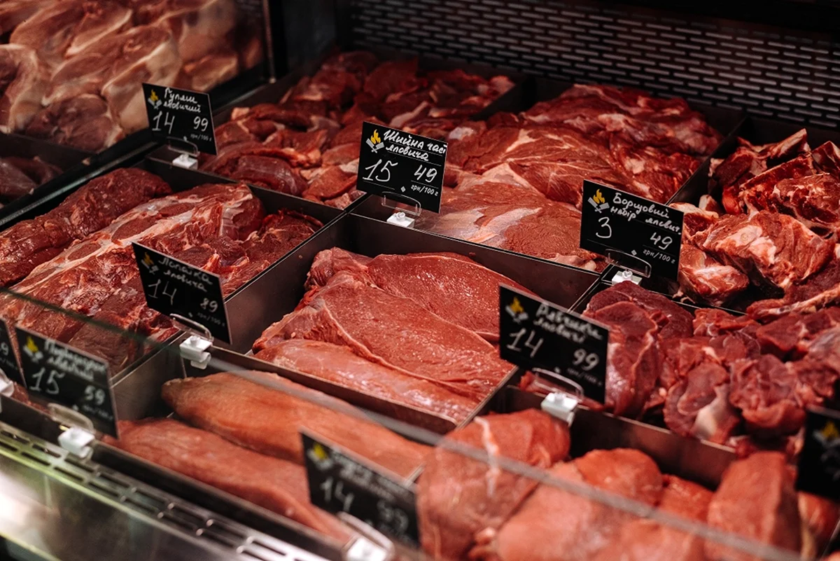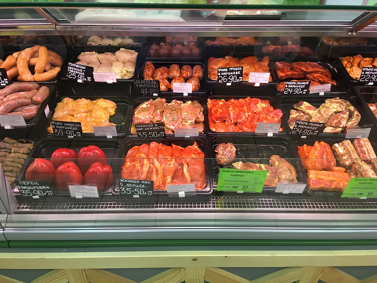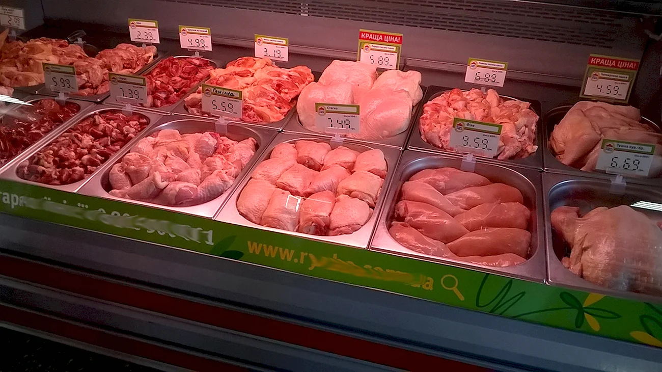 Отличный выбор свежего мяса на витрине, можно приготовить вкусный ужин для всей семьи!