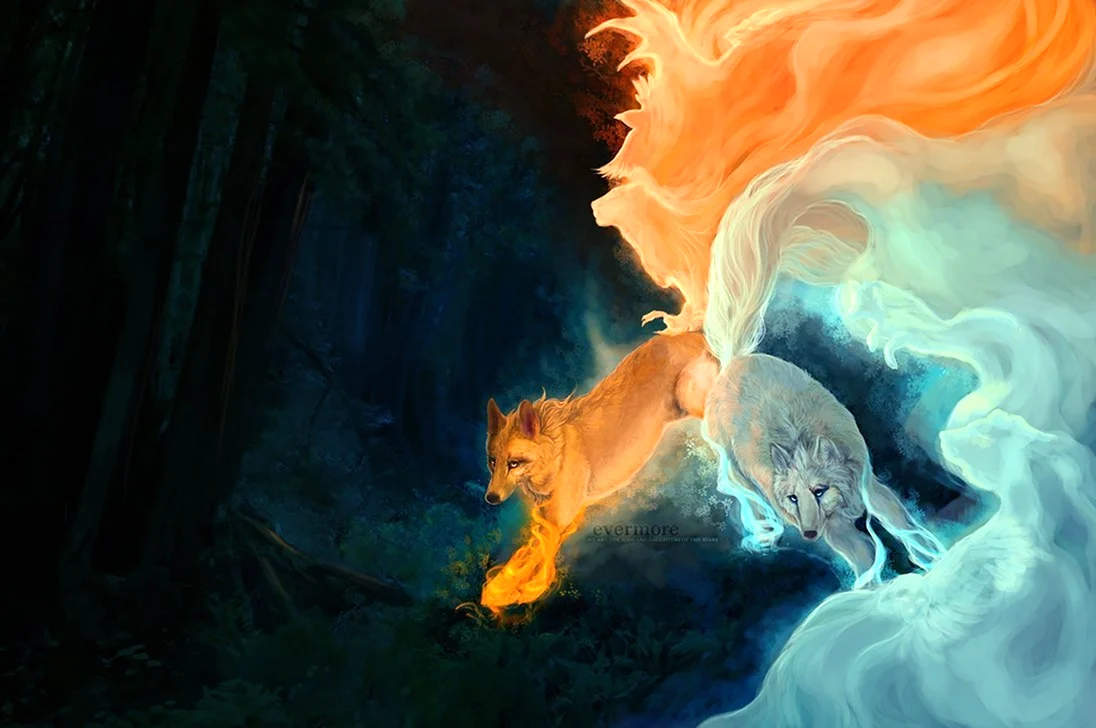 Эти волки — настоящие маги! Кто-то командует огнём, кто-то управляет ветром, а кто-то и в воду может прыгнуть… Точно, что-то супернатуральное!