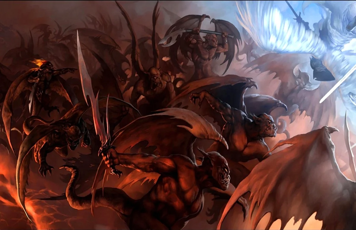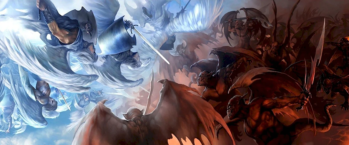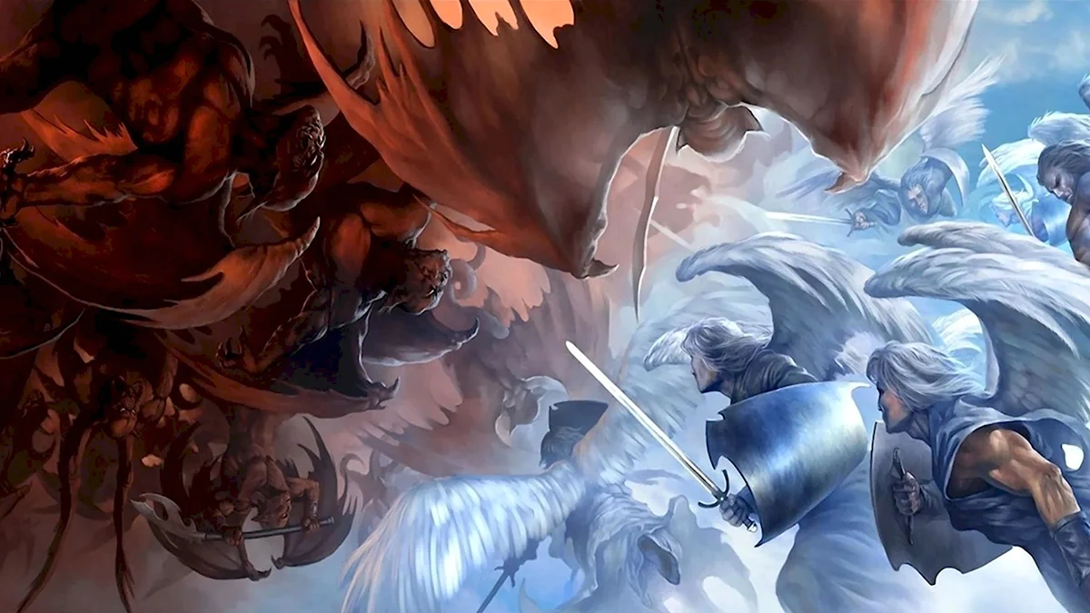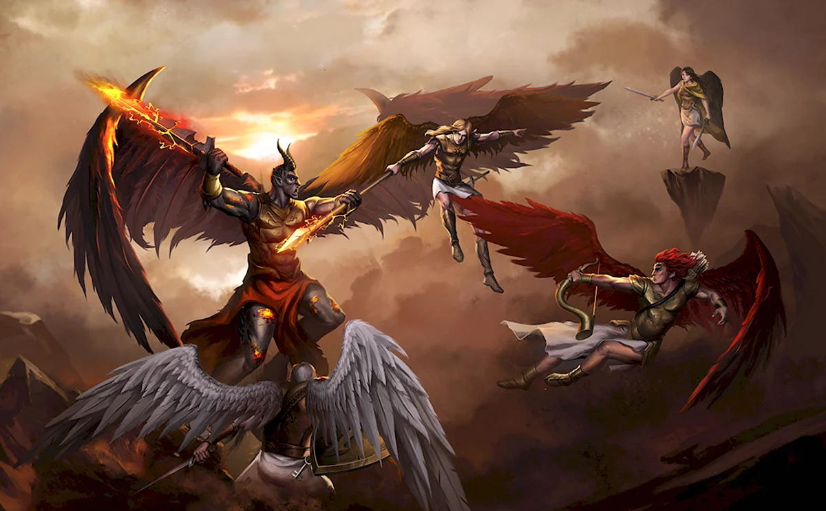 Какая динамика! Ангелы явно забыли про свои крылья, а демоны — про маникюр! Битва обещает быть жаркой!