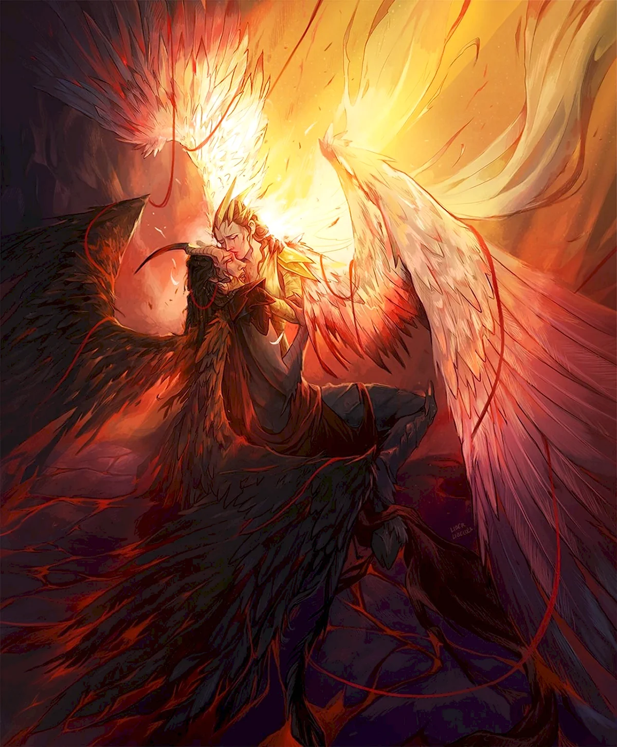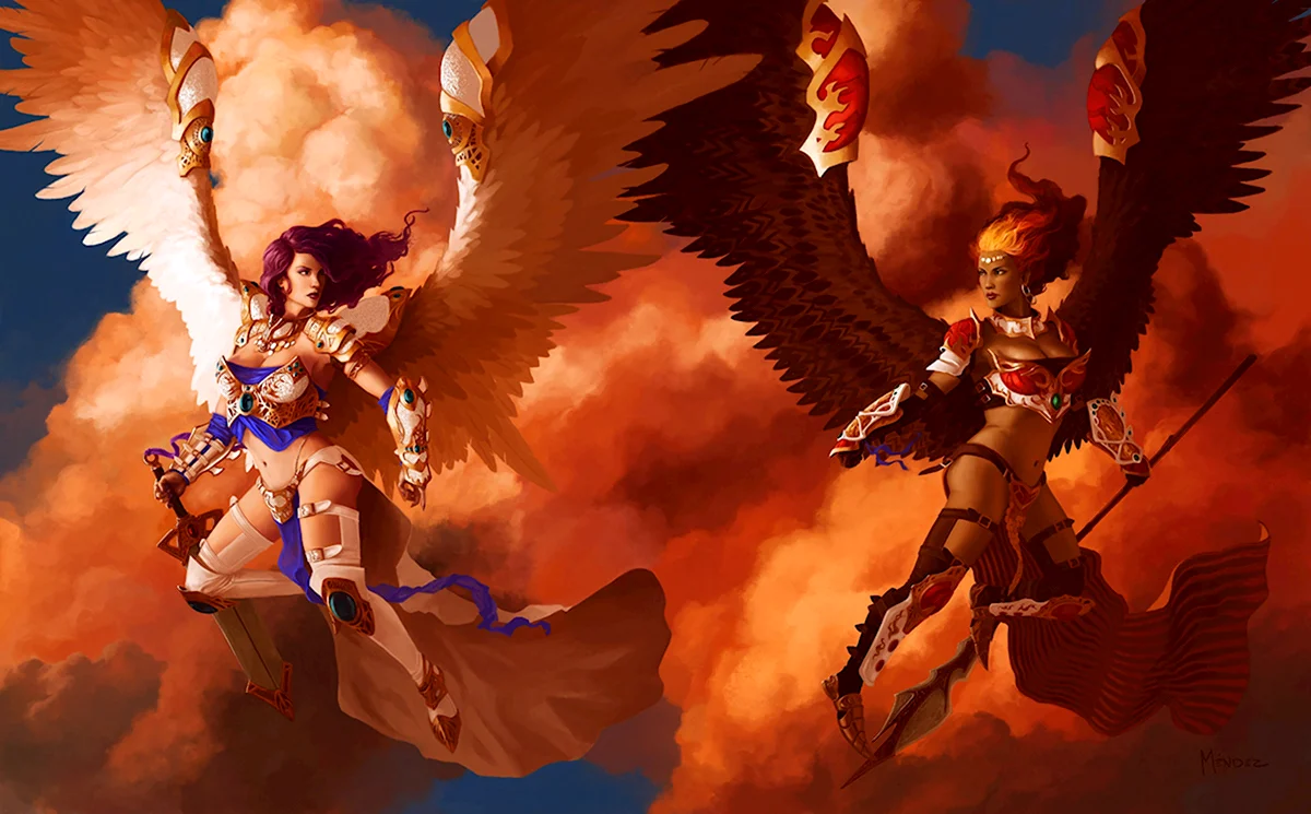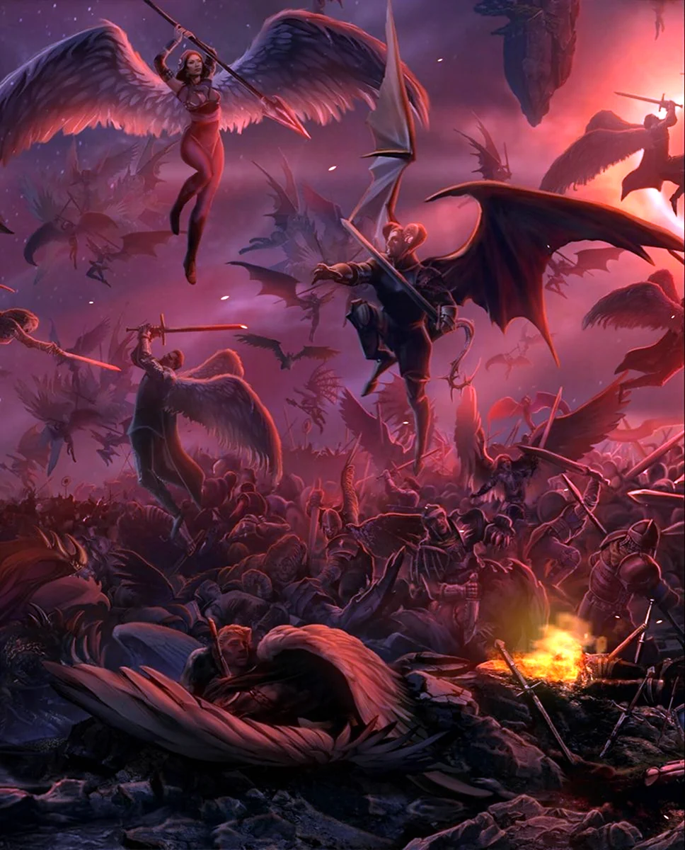 Какая динамика! Ангелы явно забыли про свои крылья, а демоны — про маникюр! Битва обещает быть жаркой!