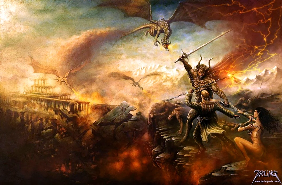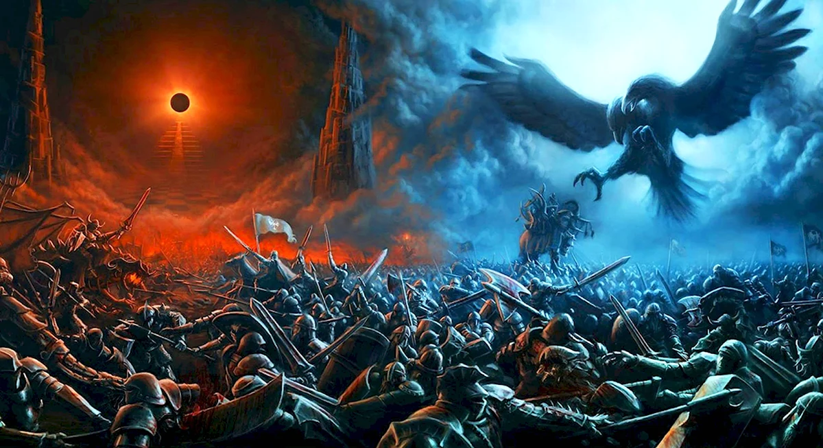 Ого, какая битва разворачивается на этих изображениях! Удивительно, как художники могут так реалистично и одновременно фантастично передать эту грандиозную борьбу света и тьмы. Каждый кадр как сцена из эпического фильма — аж дух захватывает! ✨