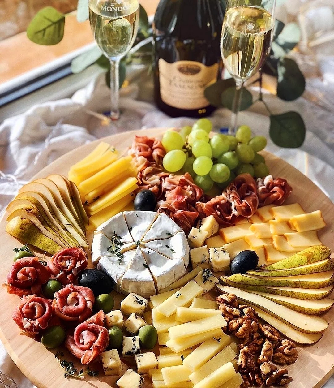 Ой, девочки, посмотрите на эти чудеса в менажнице! Каждая закусочка как произведение искусства! Так и хочется попробовать всё и сразу. Вот тут, например, эти мини-брускетты с креветками… Да я за них, кажется, душу готова продать! А как вам эти крошечные сырные шарики? Просто идеальные компаньоны для бокала хорошего вина. Уверена, что с такой подачей стол просто обязан стать центром внимания на любой вечеринке. Приятного аппетита!